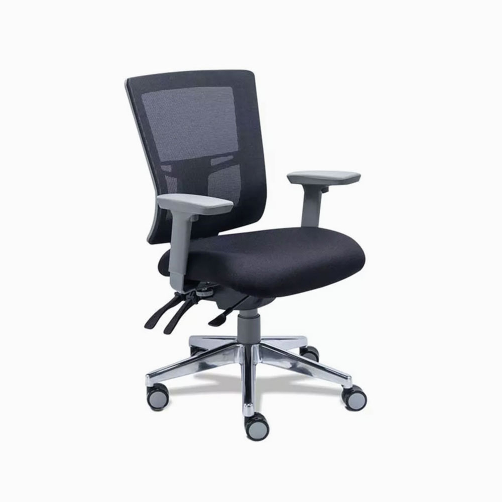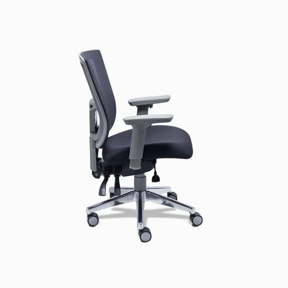 Respaldo: De respaldo medio con ajustes de altura, profundidad de forma anatómica, sin brazos.